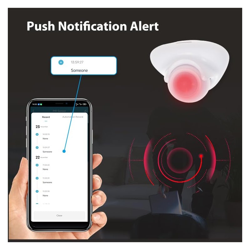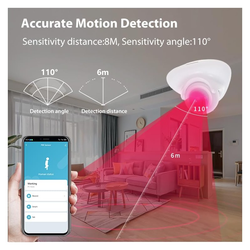PHOVOLT Matte Motion Sensor, Intelligent Motion Sensor for Home Security, Wireless Motion Sensor with Remote Monitoring App, Works with Apple HomeKit, Alexa, Google Home
