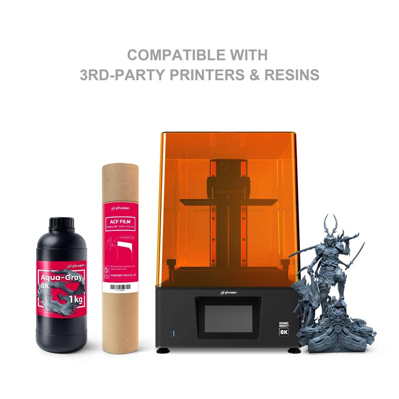 - 【Compatible With Various 3D Printer】ACF Film (Mighty Size) is compatible with the Phrozen Sonic Mighty 8K, Sonic Mighty 4K, and other similarly sized 3D printers. (*The ACF film needs to be used together with the new and soon-to-be-released firmware and with the suitable parameter settings in order to achieve faster printing speed.) "