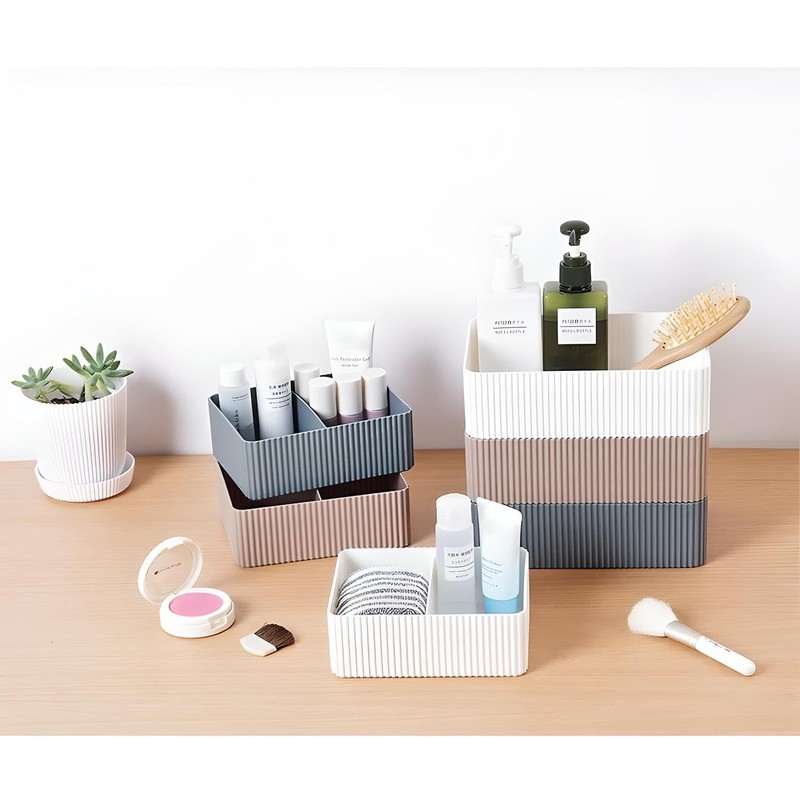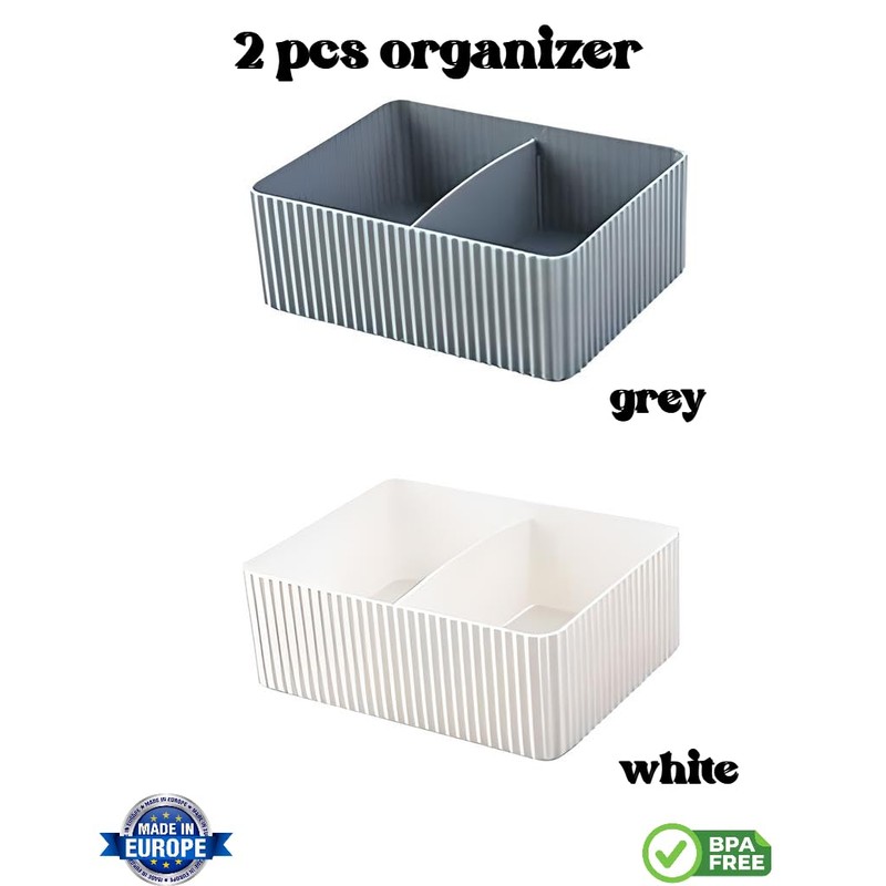 PHRYGIA Cosmetic Organiser 2 pcs with 2 Compartments,Dresser-Top Organisers, Open Top Bathroom Tidy Box, Home and Kitchen Storage Organiser,Desk organiser,Drawer Organiser (grey&white, 2 divide)