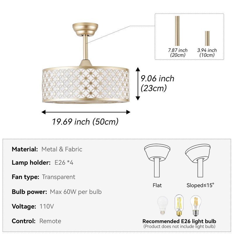 - Simple Setup: Upgrade your space effortlessly with the Gold Chandelier caged ceiling fan, designed for straightforward installation. Pre-assembled components allow for immediate enjoyment in any room—whether a cozy bedroom, elegant living room, or modern kitchen. With two adjustable height rods(7.87" + 3.94"), you can customize the fan’s position for style and efficiency.