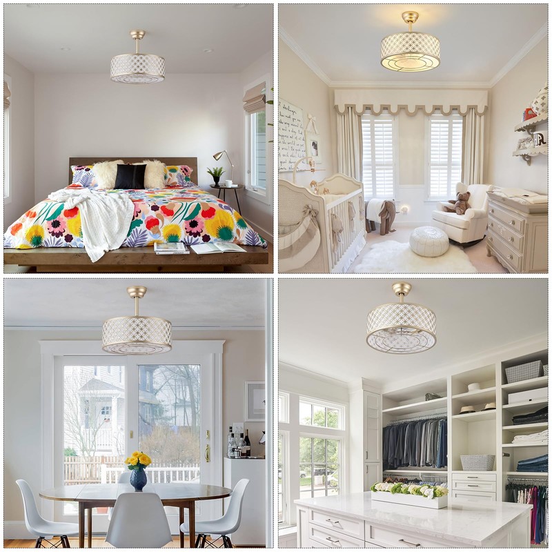 - Stylish Update: Enhance Your Space with the Gold Fandelier Caged Ceiling Fan! Revamp your home with the chic Gold Fandelier Ceiling Fan that combines functionality with modern elegance. Say goodbye to mundane fans and embrace a design that shines! This stunning chandelier ceiling fan features a luxurious gold finish and a soft fabric shade,casting a gentle glow perfect for any room—from bedrooms to sophisticated living spaces. Its eye-catching design elevates your decor and brings a touch of class to your environment.