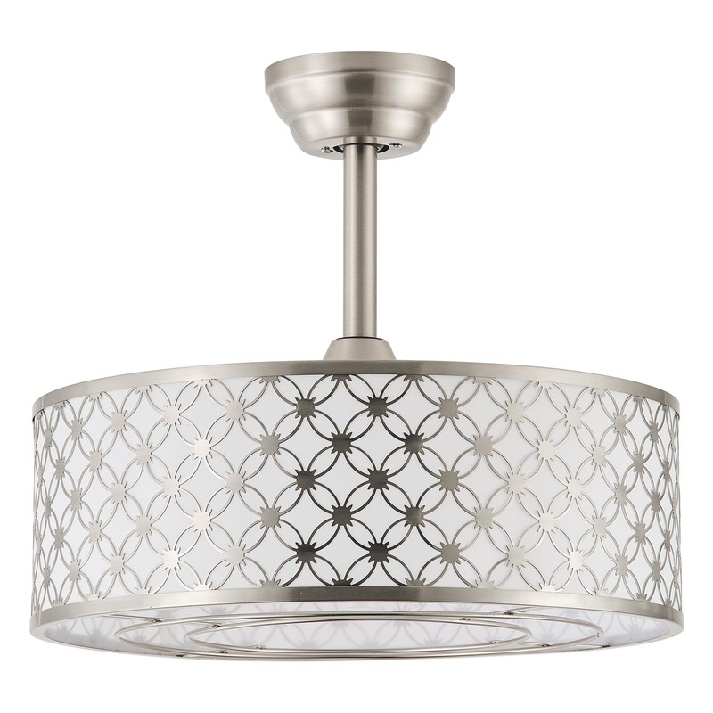 Phrylix Silver Fandelier Ceiling Fan with Light, 20" Caged Silver Chandelier Ceiling Fans with Lights Remote Control, Fabric Mid-Century Modern with 6 Speeds for Bedroom, Nursery, Living Room.