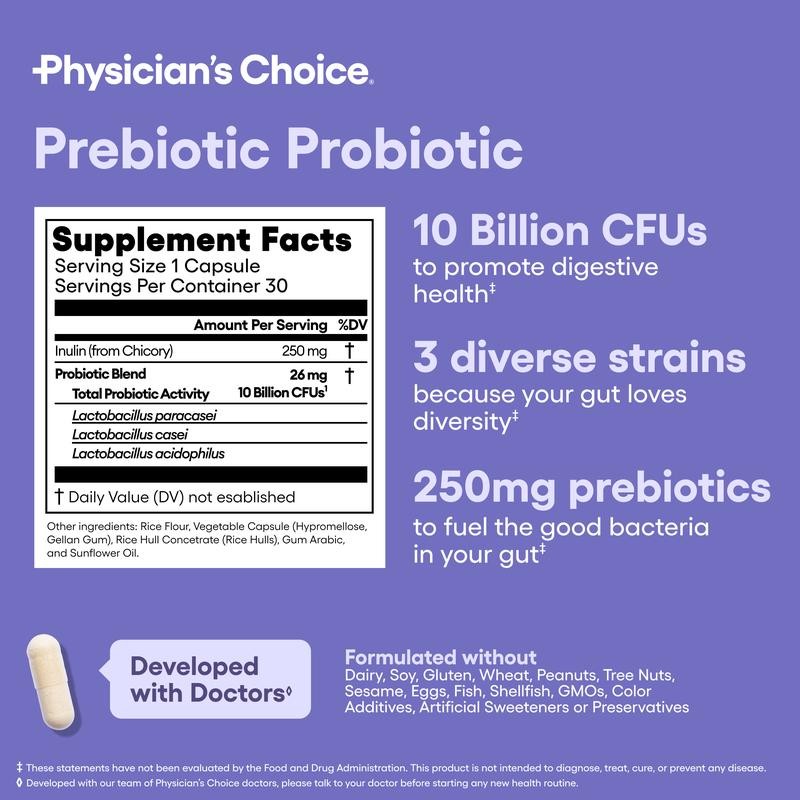 Physician's Choice Prebiotic-Probiotic with 10 Billion CFUs & Prebiotic Inulin – Powerful PrePro Formula for Digestion, Gut Health & Immune Support for Adults