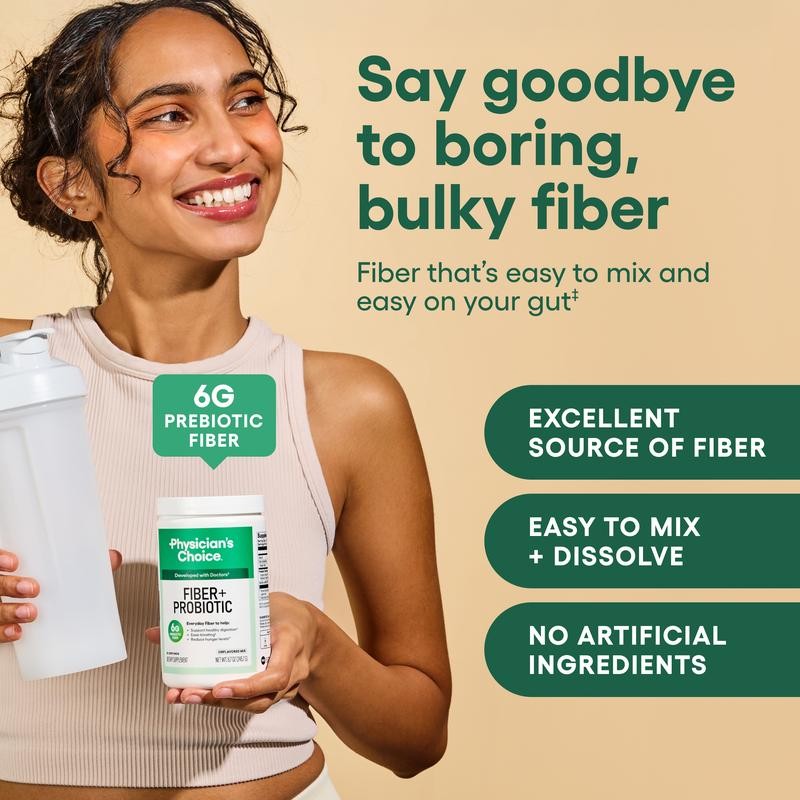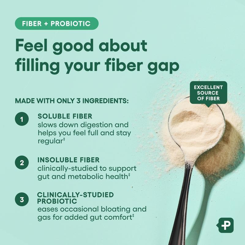 • Mix 1 tablespoon of Fiber + Probiotic Powder into your favorite drink or snack daily.