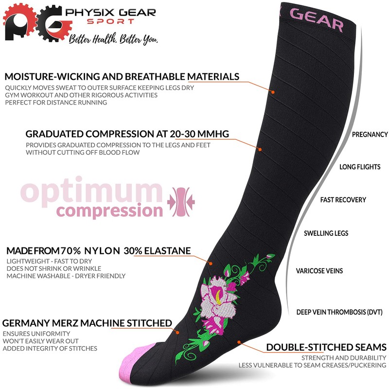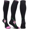 Physix Gear Compression Socks - Best Men & Womens Compression Socks for Circulation, Running, Nurses, Athletic Use Sock Compression, Blood Pressure Socks, Calcetines de, Black/Pink Flower, XXL