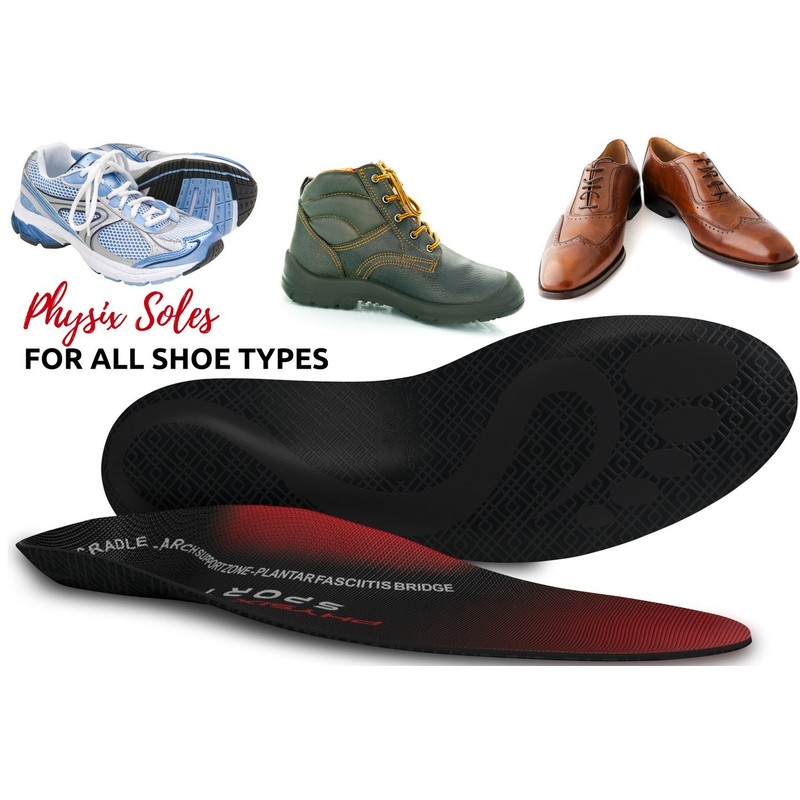 Physix Gear Insoles for Men & Women, Durable Shoe Inserts for Everyday Comfort and Stability, Red/Black, S