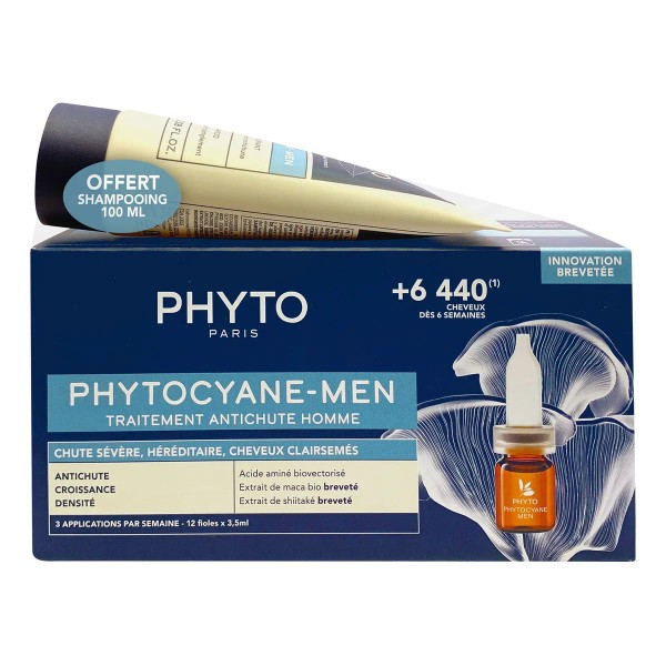 Phyto Set Anticaída Hombre - Ampolletas + Shampoo 100ml es un tratamiento integral diseñado especialmente para combatir la caída del cabello masculina 💪🌿. Combinando la acción fortalecedora del shampoo con las ampolletas concentradas, este set estimula el cuero cabelludo, mejora la resistencia capilar y promueve un cabello más denso y saludable.