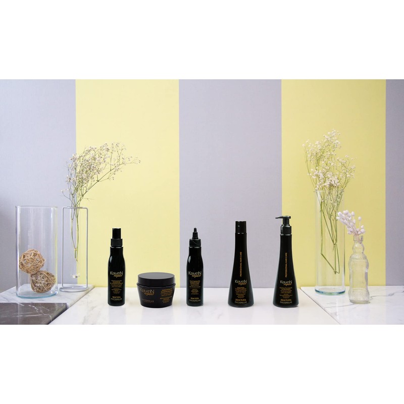 - The keratin complex contains liquid keratin that fixes to the hair fibre and counteracts the signs of the time of the hair