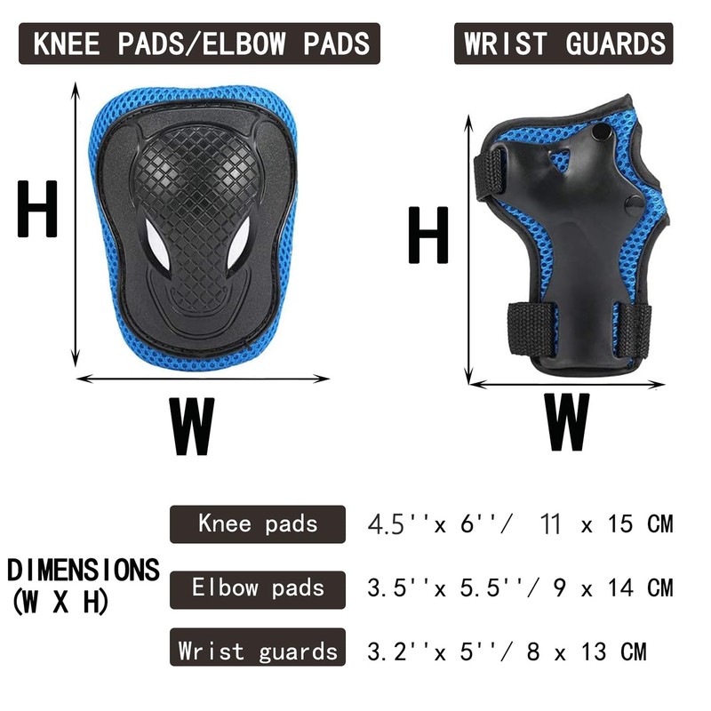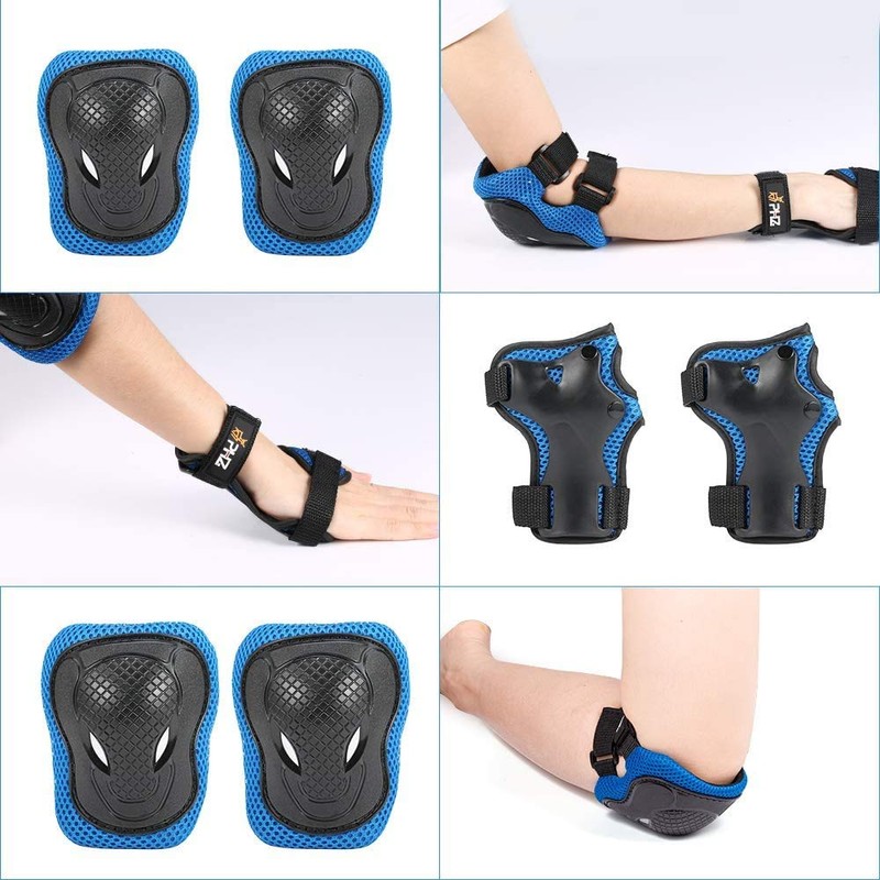 - [KIDS PROTECTIVE PADS] Elbow pads, knee pads, and wrist guards 6pcs a set bring your child all-round and perfect protection. The straps are elastic. They can be easily adjusted with extending closures straps according to your kids' knee, elbow, and wrist girth. Perfectly fits for all sizes and long time using