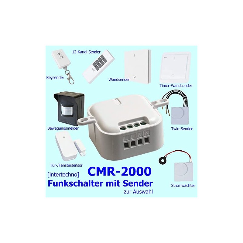 - The CMR-2000 wireless built-in switch from Intertechno wirelessly switches all lamps as well as fixed wired machines and electrical appliances up to a power of 2000 watts on and off.
