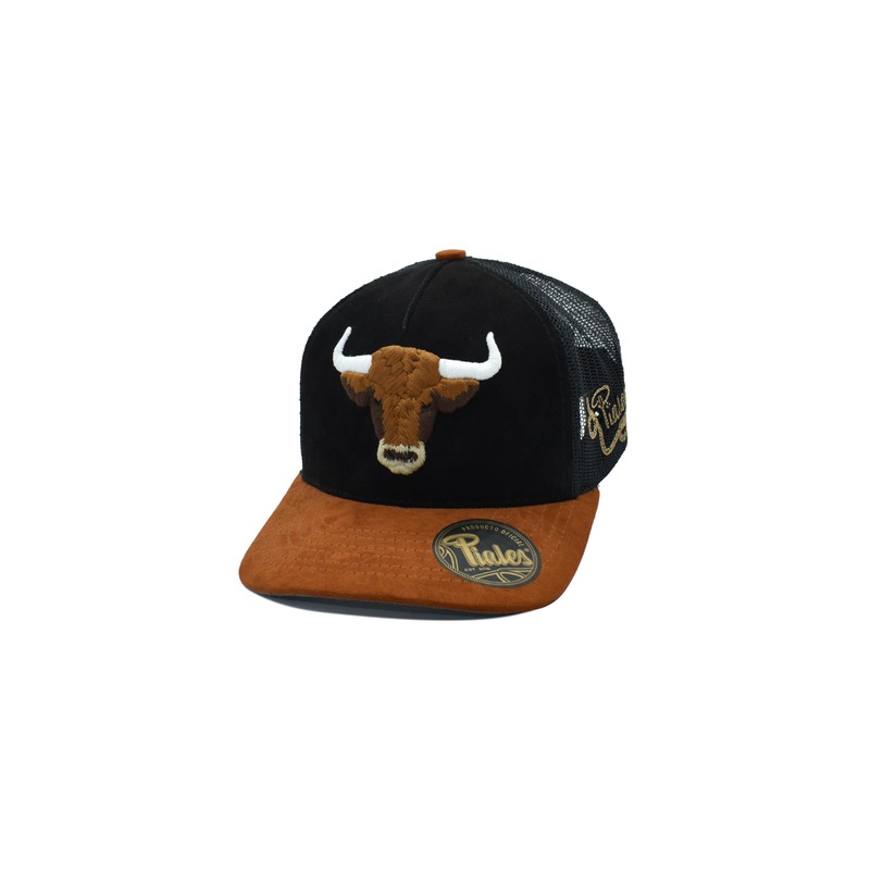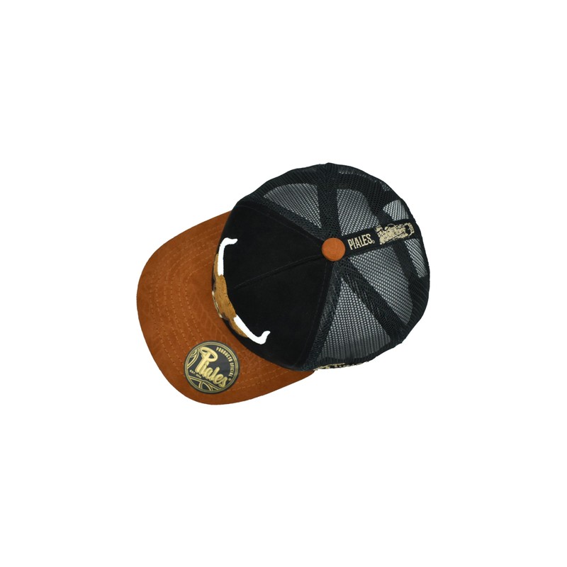 Gorra Piales premium con materiales en Semigamuza, aplicación de bordado realista al frente, malla trasnpirable y broche ajustable, forro interno para mas durabilidad contra el sudor y comodidad al igual que la banda de sudor es de algodón,