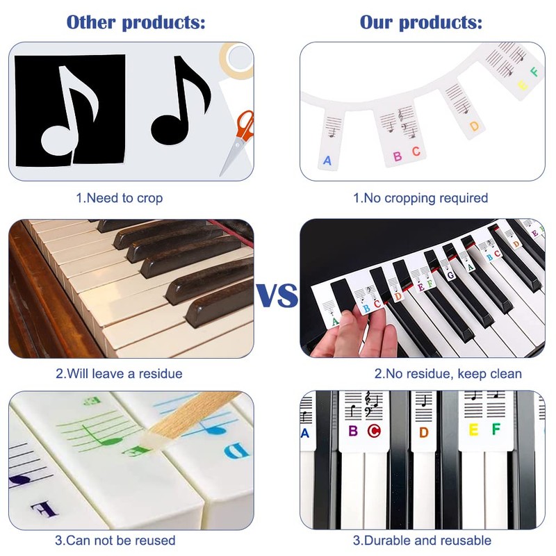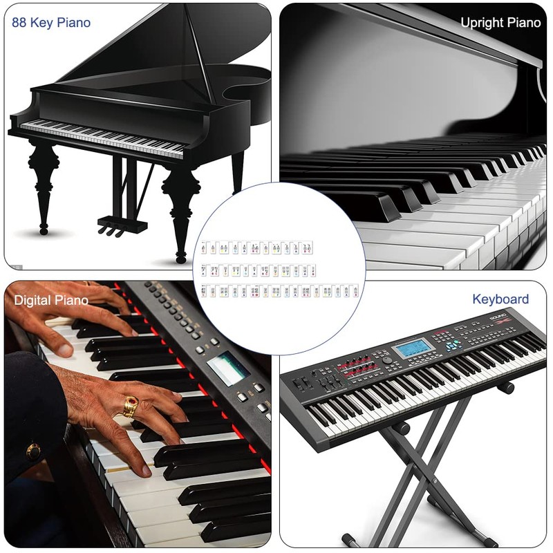 - Great for everyone. This piano sticker is ideal for beginners and children to learn and remember music theory, notation and key positions. It covers all four octaves, which is very convenient for children or all beginners who start playing the piano.