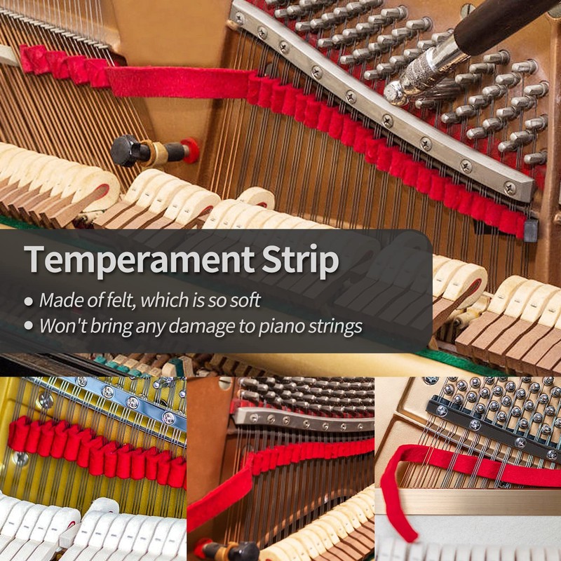 • MULTI-FUNCTIONAL - The tuning wrench is designed to turn the piano peg pin to adjust the first tension to make the sound raised or lowered. The rubber mutes can be inserted between strings to mute the section and the temperament strip is used to mute off the outside strings. The tuning fork is used to check the pitch of a piano.