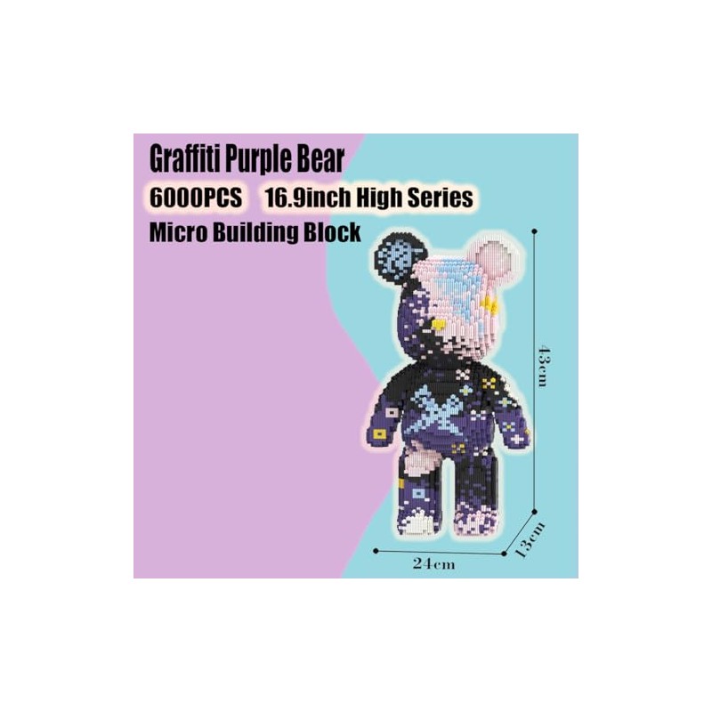 - PIECE COUNT: Contains 6000 precisely engineered micro building blocks for creating an intricate purple bear design with graffiti-style details