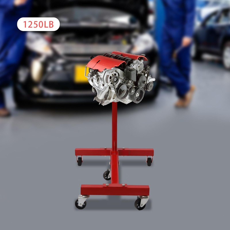 PIAOCAIYIN Folding Engine Stand, 1250 lbs Capacity Engine Run Stand, Heavy-Duty Motor Stand w/360 ° Rotatable Head & Swivel Caster Wheels, for Garages, Repair Shops, Red