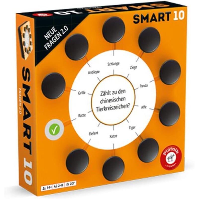 SMART 10 additional questions 2.0 200 new questions... and 2000 new answers for the revolutionary SMART 10 quiz game. Simply replace the card set with the Smartbox of the original game and nothing will get in the way of other exciting quiz evenings.