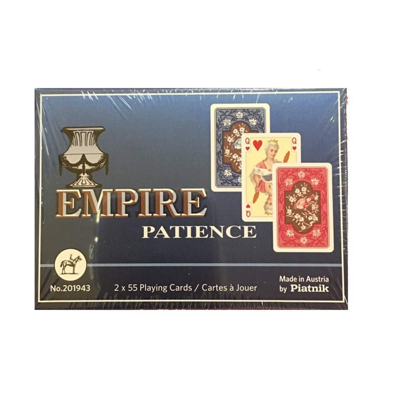 A patience card for the discerning lady and gentleman of the world. The card design is based on the style of the 18th century, brilliant colours and lovingly depicted down to the last detail. The backs are elaborately printed in gold-blue and gold-red with birds.
