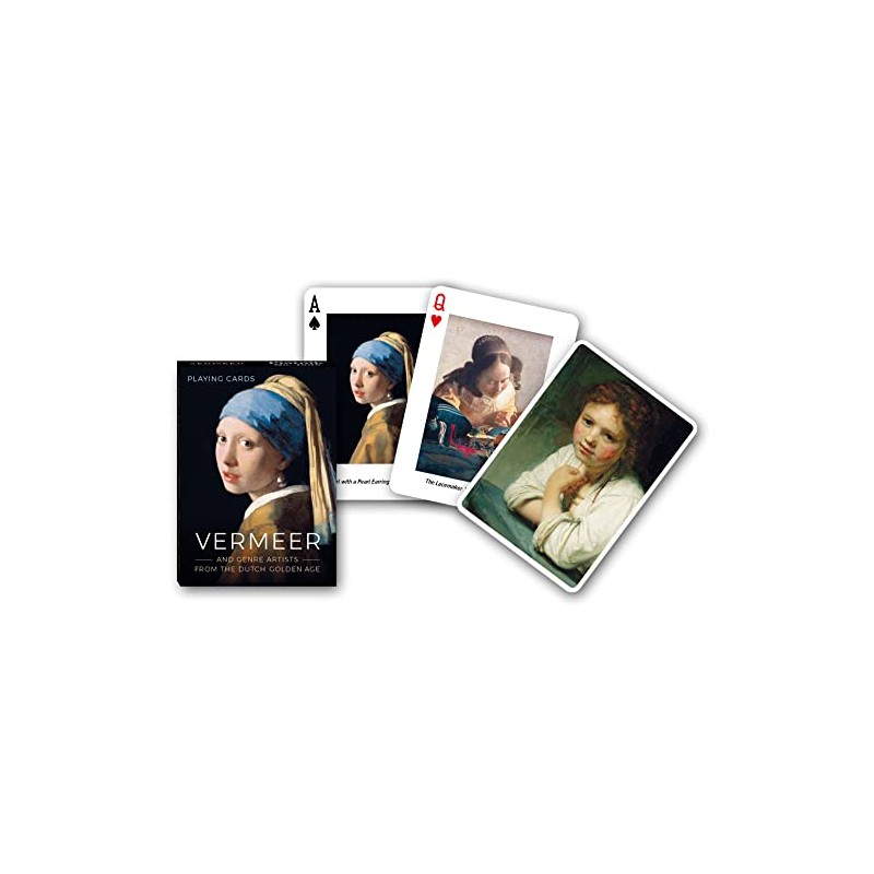 - This Johannes Vermeer playing card set from Piatnik consists of poker sized cardboard playing cards with a standard index with 2 corner characters and comes with 2 jokers.
