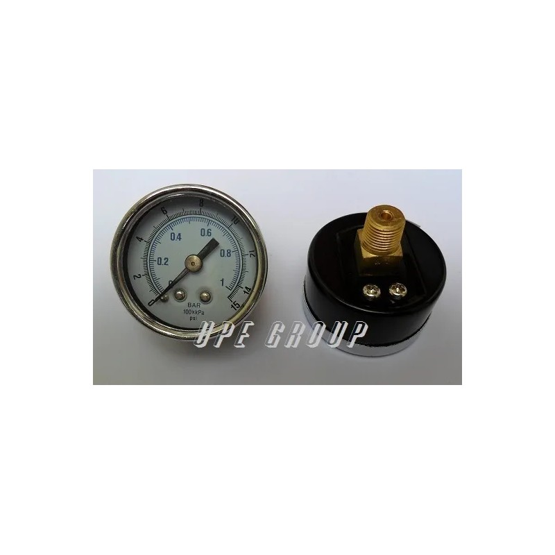 NEW AIR PRESSURE GAUGE. 1.5" FACE WITH 1/8" MALE NPT CONNECTION. CENTER BACK MOUNTED.