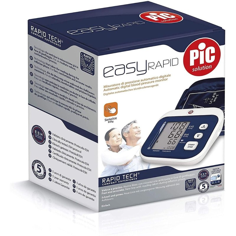 The Pic Easy Rapid blood pressure monitor is equipped with Rapid Tech Comfort Experience with inflation measurement which offers a quick and comfortable result.