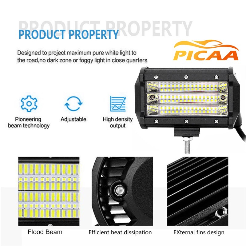 PICAA 2-Piece 5 Inch 135 W LED Work Light, 6000 K White Floodlight, LED Lightbar Light Bar, Car Offroad, 4 x 4 Truck, Tractor, Motorcycle, 12 V, 24 V Additional Headlights