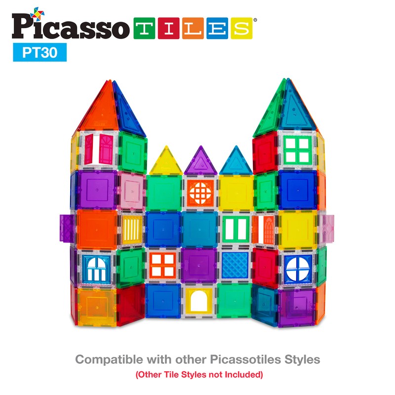 PicassoTiles 30 Piece Window and Door Clip On Magnetic Blocks Magnet Tiles Magnets Building Tile Construction Toy Set STEM Education Toys Learning Kit Stacking Block Playset Boys & Girls Age 3+ PT30
