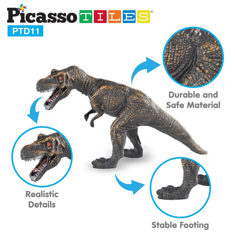 - BPA-free and child safe material. HIGH-QUALITY TOXIC-FREE – The PicassoTiles PicassoToys dinosaur PTD11 play set is made of high-quality, toxic-free, and safe material with the highest standards to ensure the safety of our children. All the action figures are made for stable balance footing when placed on flat surface. Product package dimension: 10.4 in x 4.9 in x 7.9 in.