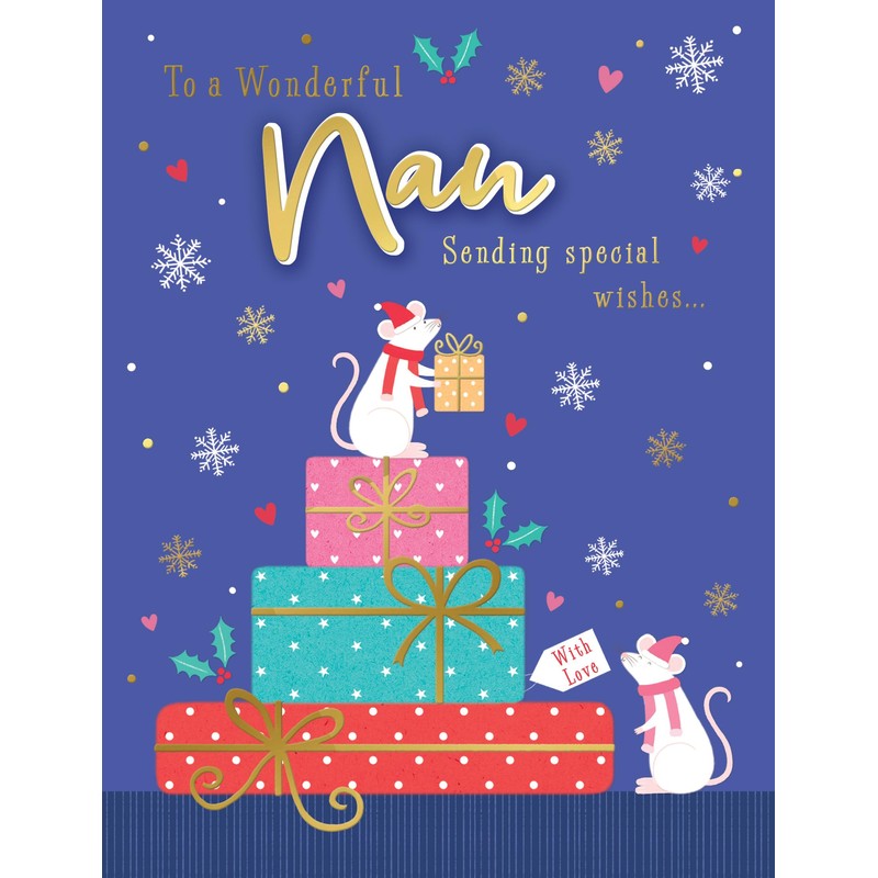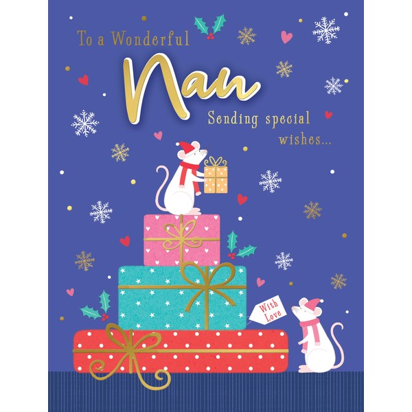 Piccadilly Greetings Character Christmas Card, Nan, Mice - 8 x 6 inches