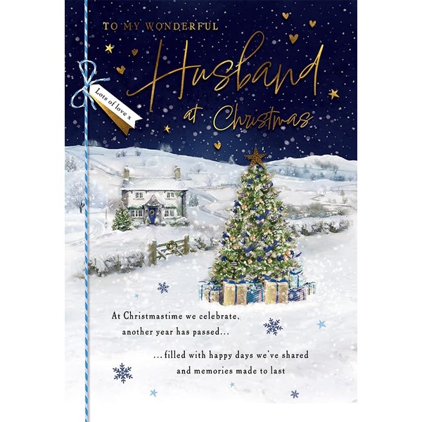 Piccadilly Greetings Christmas Card To My Wonderful Husband Cottage scene - 9 x 6 inches
