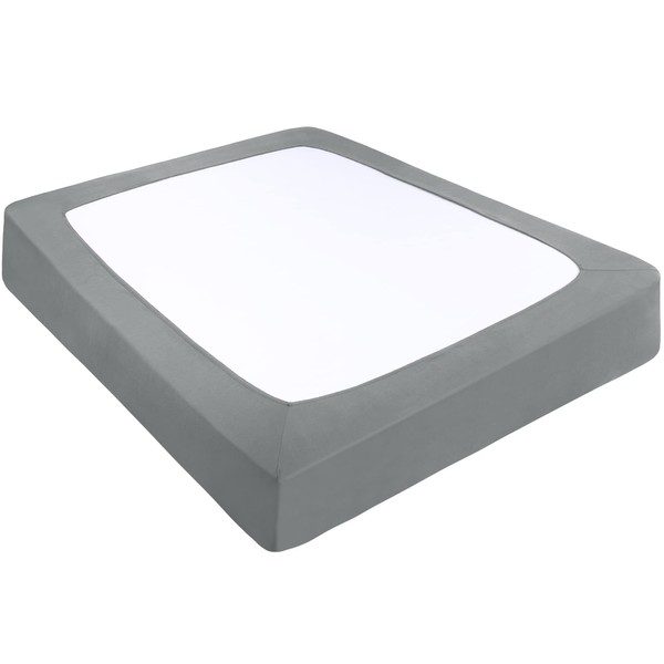 PiccoCasa Box Spring Cover Stretchy Fabric Wrap Around 4 Sides Bed Skirt Wrinkle Free for Home, Elastic Mattress Cover Fits Mattress up to 14” King Cadet Grey