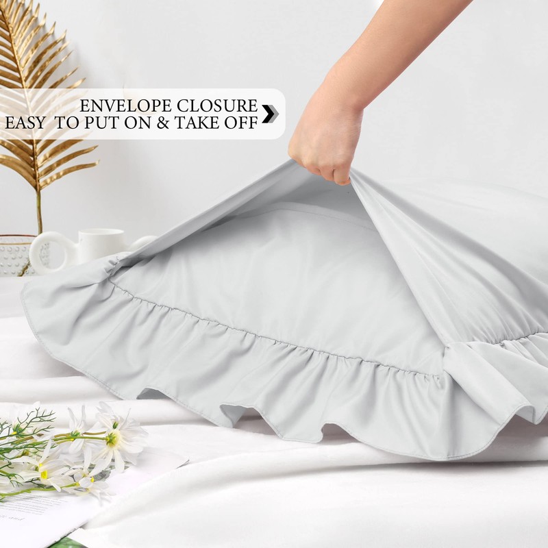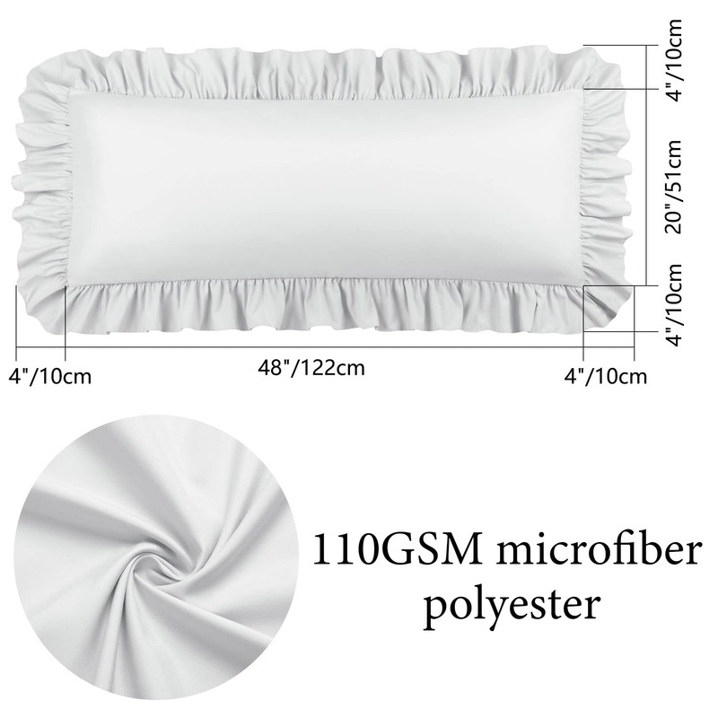 - Softness and Comfort: Our Light Gray brushed ruffle body pillowcases woven from the highest quality 110GSM microfiber polyester material. Body Size 20"x48"/ 51x122cm(W*L) brushed on both sides for ultimate softness and comfort. These simple and soft pillowcases can cover and preserve the body pillows from being dirty and also can decors your bedroom. Instantly create a fresh new look in your bedroom with these ruffle pillow shams.
