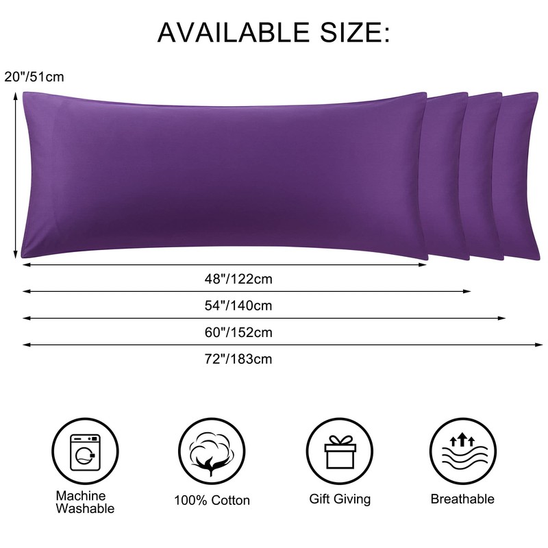 PiccoCasa Dakimakura Pillow Cover 100 Cotton Envelope Shape Pillowcase Life Size Solid Long Pillowcase Cotton Hotel Quality Soft Texture 1 Piece Purple 50x150cm
