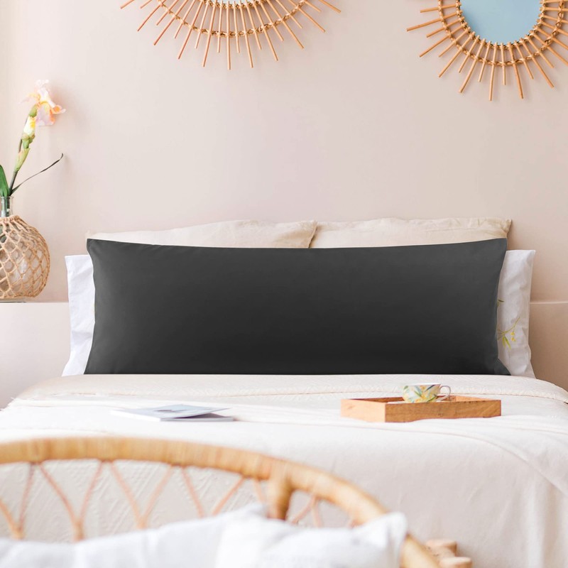 PiccoCasa Pillowcase 50 x 150 cm Pillowcases Long Pillowcase with Envelope Closure Made of Microfibre Side Sleeper Pillow Cover Body Pillow Cover Black