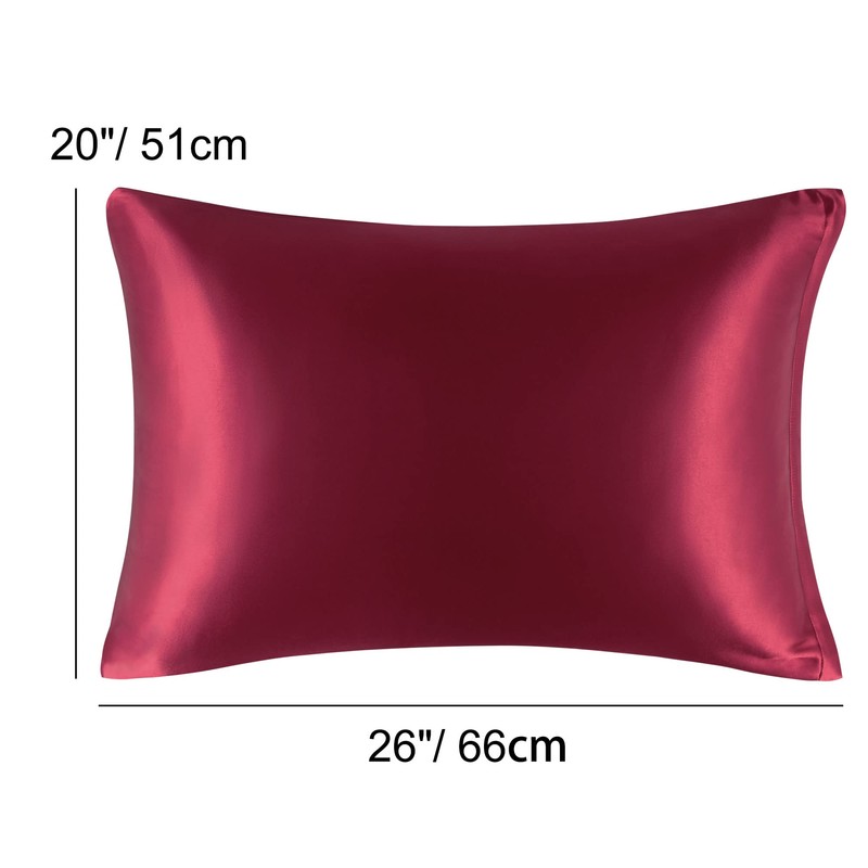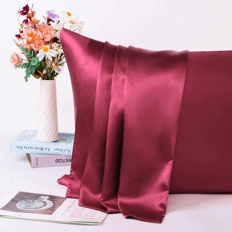 PiccoCasa Satin Pillow Cases 2 Pack, Satin Silk Pillowcase for Hair and Skin with Zipper Closure Soft Pillow Cases Cover Set Burgundy 50 x 65cm