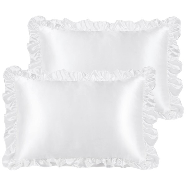 PiccoCasa Satin Pillowcases for Hair and Skin, Retro Silky Pillow Cover with Luxury Ruffle and Envelope Closure Satin Pillow Cases 2 Pack White 50 x 75cm