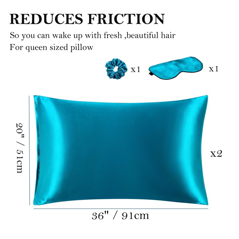- Package Included: The satin pillowcase gift set comes complete with TWO SILKY PILLOWCASES, ONE EYE MASK, AND ONE SCRUNCHIE; everything you need to get up looking and feeling refreshed. A variety of colors and sizes (8 colors and 3 sizes) for you to choose. Everyone can select the colors you like and match your room according to your furniture and room style