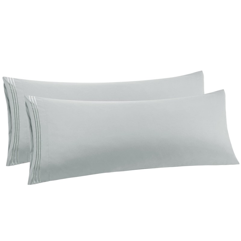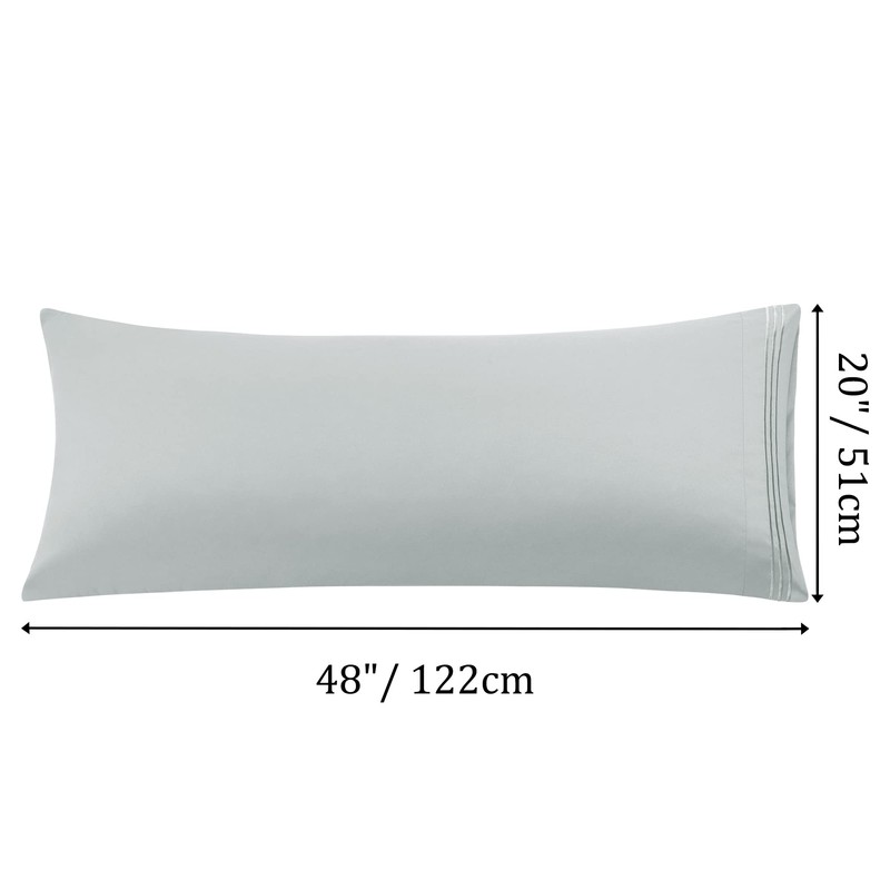 PiccoCasa Soft Brushed Microfiber Body Pillowcases 2 Pack, Breathable Embroidery Bolster Pillow Cases, Body Pillow Cover Cases with Zipper Closure Light Grey 20"x48"(4ft)