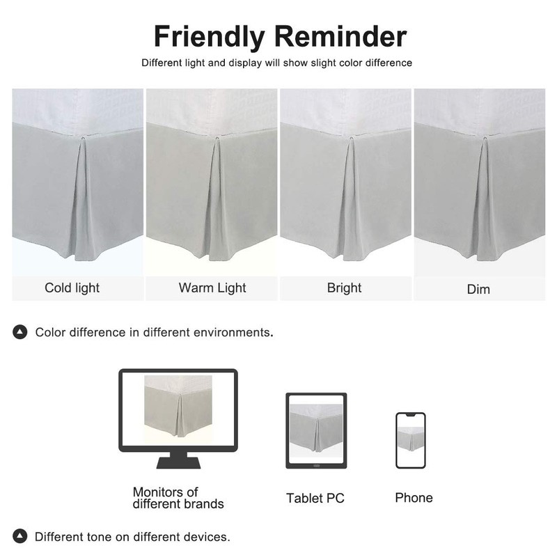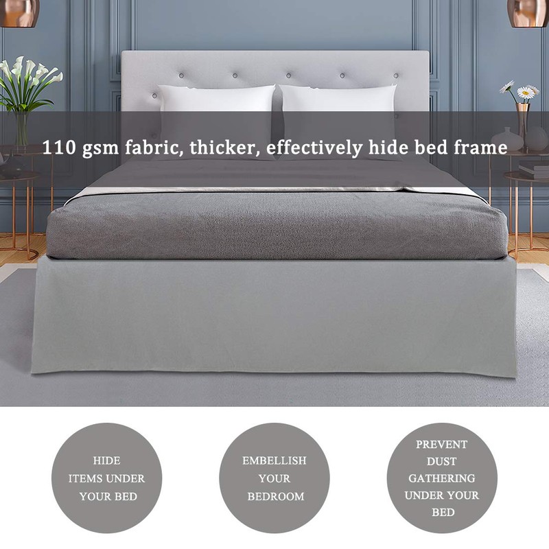 - Better Material Better Experience: For better customer satisfaction, Our bed skirt made from 110gsm polyester fabric, which is thicker and durable than normal bedskirt. The fabric is dust resistant, wrinkle free and extremely soft and smooth.