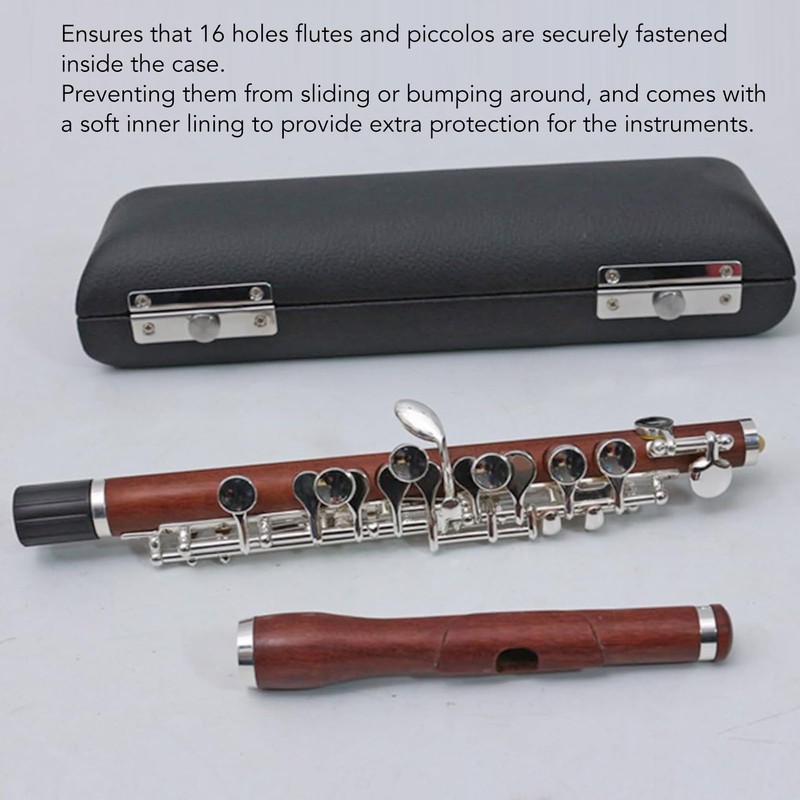 5. Slotted Design This Piccolo storage case features special slots inside to ensure that 16 hole piccolo flute and flute are securely fixed in the case so they don't slip or bump, and also features a soft lining to give the instruments extra protection.