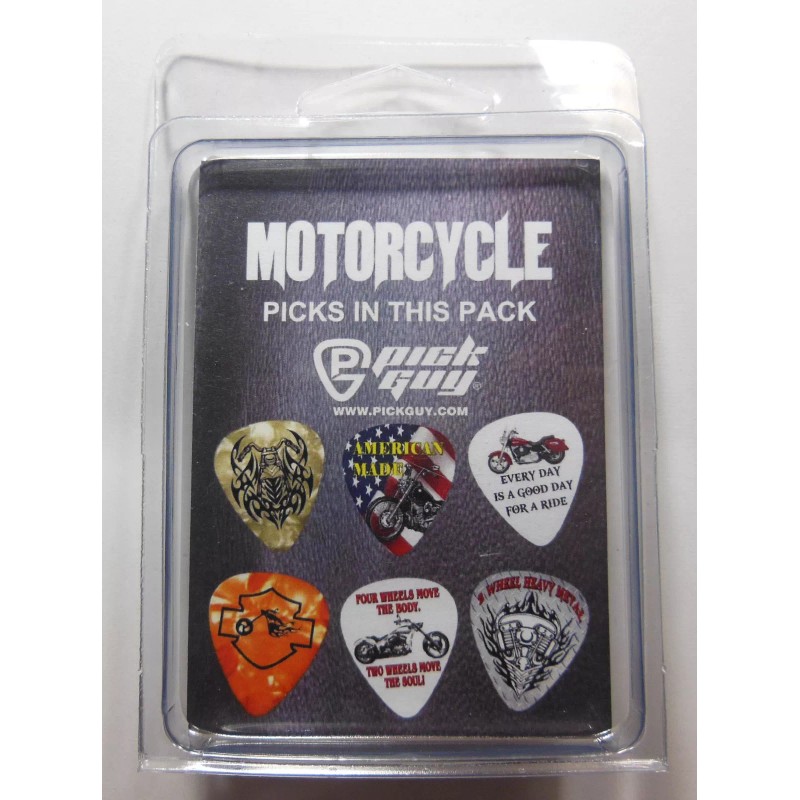 Pick Guy "MOTORCYCLE" Guitar Pick Pack, 6 Picks .71mm Clamshell, pics, plectrums