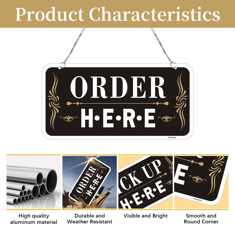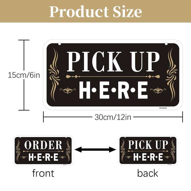 Pick Up Here Order Here Sign, Matal Reflective Order Here Pick Up Here Signs with Special Hanging Hooks Attachable to Ceiling, Pack of 2