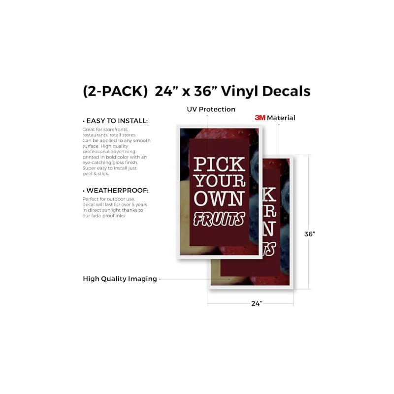 Pick Your Own Fruits (2-Pack) 24 Inch x 36 Inch Vinyl Decals | Sign Insert Peel & Stick Decals Stickers Window Signs | Local Orchards, Fresh Produce, Family-Friendly Events | Made in USA