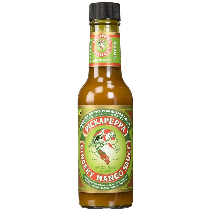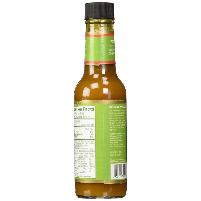 Pickapeppa Gingery Mango Sauce 5oz (3-Pack) is exploding with deliciously tangy flavor of mangos and ginger, just enough to get your taste buds dancing. 100 percent natural Ingredients. Mango, sugar, vinegar, raisins, ginger, pepper, onions, spices, and sea salt. Pickapeppa sauces are a combination of fine ingredients selected from seven countries to ensure the best possible quality. This blend is then aged in oak barrels for one full year before bottling to ensure the rich flavor that Pickapeppa’s admirers so love. Cane vinegar is used as a preservative.