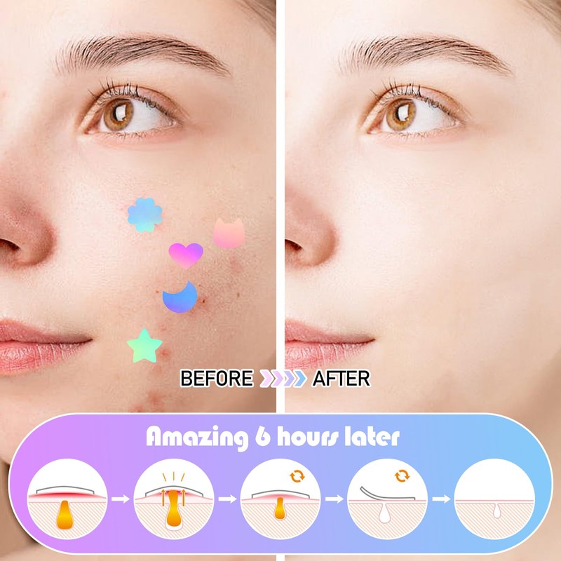 - 🟣EINZIGARTIGES DESIGN: Anders als gewöhnliche Akne-Pflaster gibt es dieses pimple patches in 7 verschiedenen Formen wie Stern, Blume und Herz. Pickel patches ist farbenfroh und sehr modisch, perfekt für Verkleidungen, Maskeraden, Partys usw.