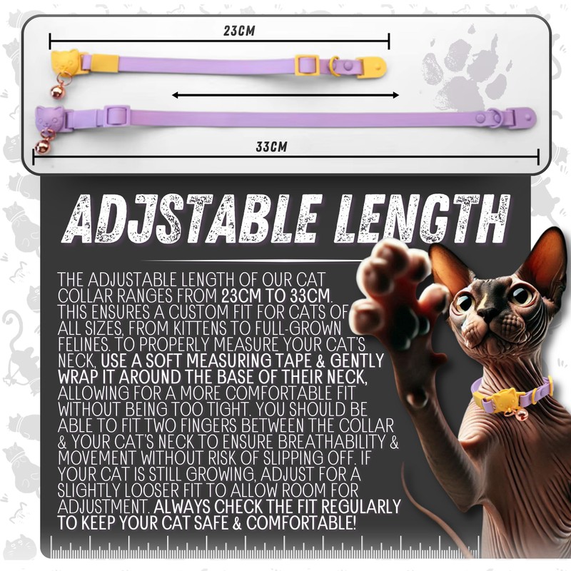 - 🐾 Soft & Comfortable Fit – The lightweight, flexible design prevents irritation and chafing, ensuring your cat stays comfortable and happy for all-day wear. While perfect for all cats, the smooth PVC-coated nylon is especially ideal for hairless breeds like Sphynx, Peterbald, and Donskoy, as it won’t rub or irritate sensitive skin like traditional fabric collars.