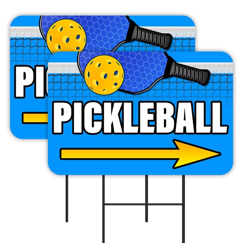 PICKLEBALL 2 Pack Yard Signs 16" x 24" - Double-Sided Print, with Metal Stakes Made in the USA