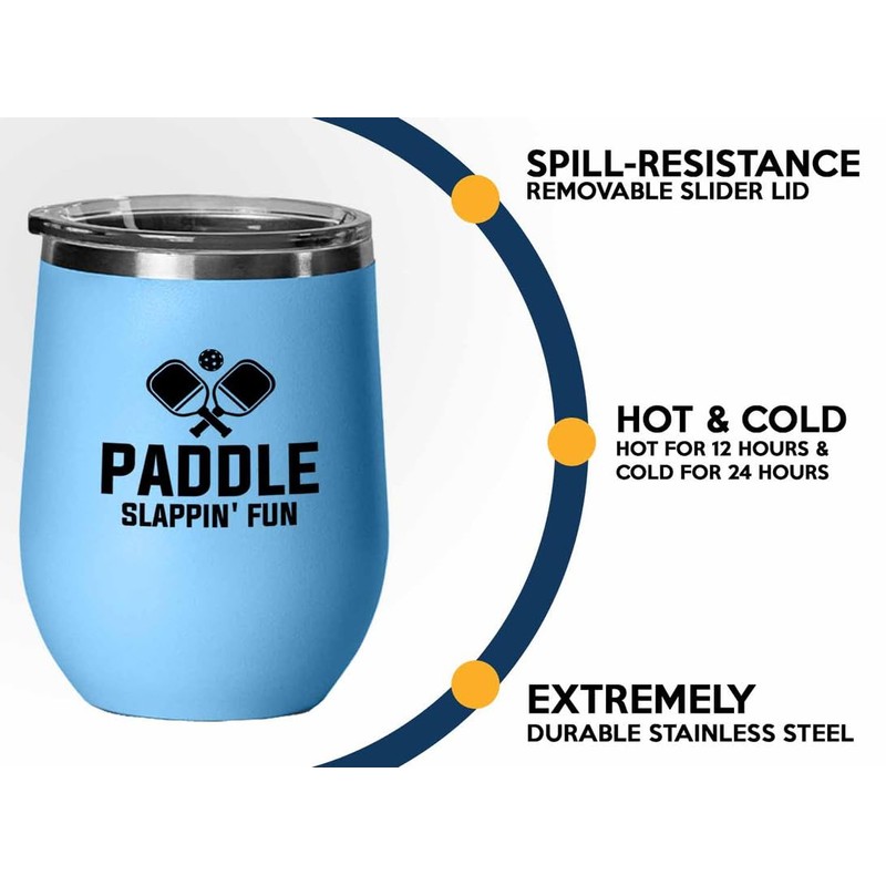 Pickleball Blue Edition Wine Tumbler 12oz - Paddle slappin' fun - Ball Game pop tennis rackets netball handlball