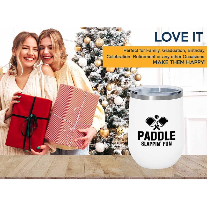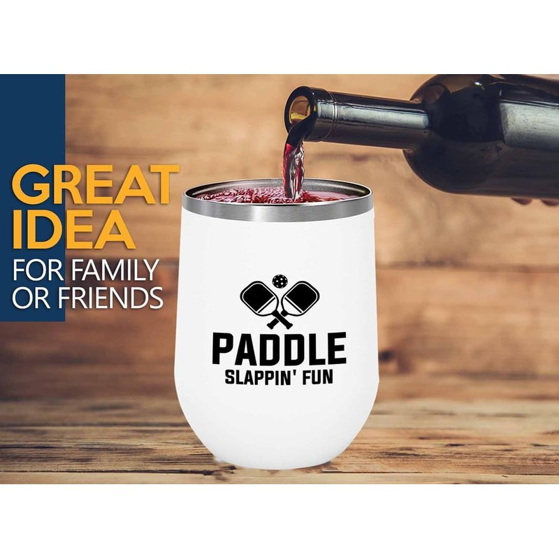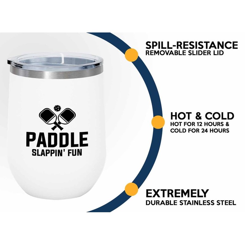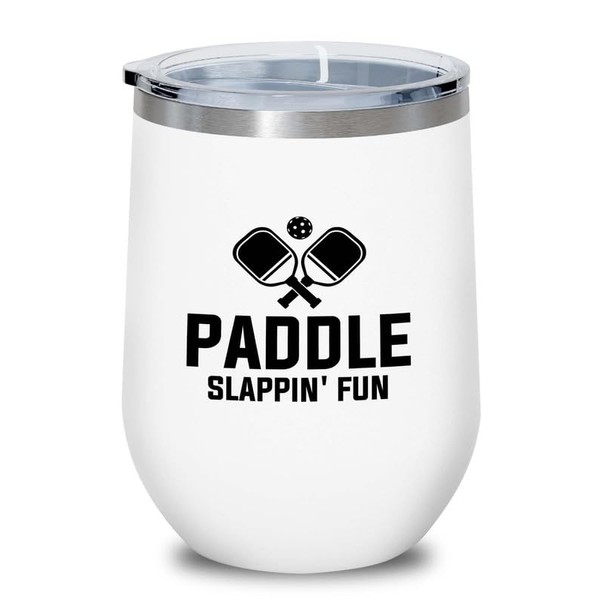 Pickleball White Edition Wine Tumbler 12oz - Paddle slappin' fun - Ball Game pop tennis rackets netball handlball