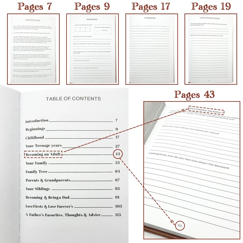 - 【Start a Journey of Discovery】 Embark on a journey to learn more about your father's life with Dad, I Want to Hear Your Story. This is not only an opportunity to listen, but also an adventure to explore your father's experiences from childhood to adulthood. Every page is full of learning and inspiration, allowing you to cherish your family's history and wisdom while understanding his triumphs, challenges and lessons.