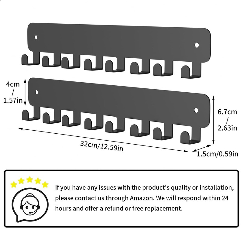 pickpiff 2 Pack Key Holder for Wall Adhesive, Key Hooks with 8 Hooks Wall Mounted, Black Key Hangers for Wall Decor No Drill for Living Room, Kitchen, Office